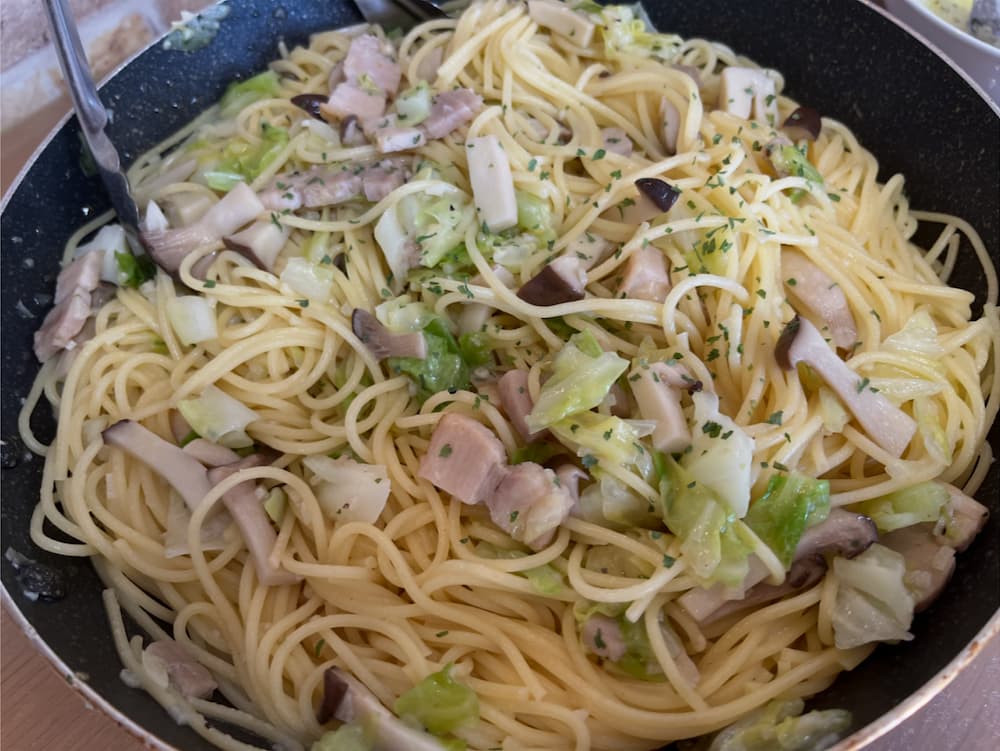キャベツとベーコンのペペロンチーノ