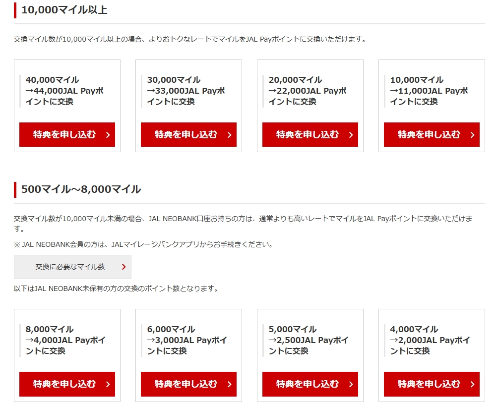 500~8000マイルだと半分のポイントになってしまいます。JAL NEOBANK保有してると1万マイル以下でも未保有者よりポイントが20%上がるみたいです。