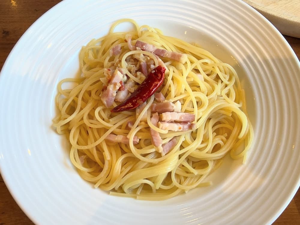 ニンニクがしっかり効いたペペロンチーノ。想像通りの味で美味しかったです。お安いのもいい!