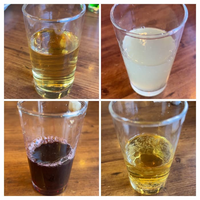 今回はシャルドネ、シャルドネ炭酸入り、カベルネ、ゆずレモンを頂きました。