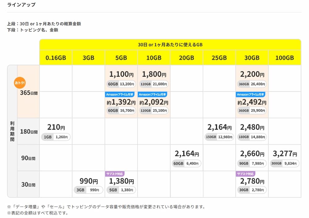 夫のプランは一年間使えるAmazonプライム付きで私のは不定期で発売される365日12Gプラン。