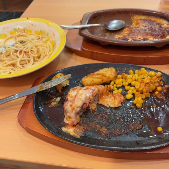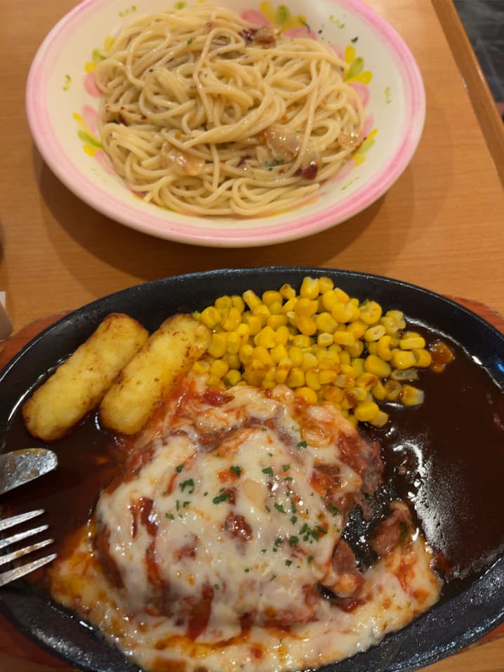 とにかくお腹が空いていた私は思うがままにペペロンチーノ、イタリアンハンバーグを立て続けに注文していた。