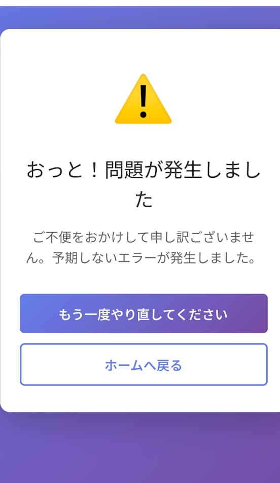 ログイン後毎回この画面になるけど「もう一度やり直してください」を押すと普通に入れます。